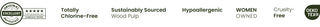 Always free from chlorine, parabens, phthalates, fragrances, lotions, latex, dyes, petroleum oils, optical brighteners, VOC-emitting adhesives, and formaldehyde releasers.